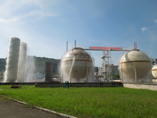 本次演練項目為:LPG1#儲罐底部出口閥被恐怖分子破壞造成液化石油氣泄漏事故的應(yīng)急處置。主要流程為:模擬事故發(fā)生、制服歹徒、報警、應(yīng)急啟動、人員疏散、安全警戒、消防噴淋驅(qū)散稀釋燃?xì)鉂舛?、搶險堵漏及最終解除警戒等。在總指揮的領(lǐng)導(dǎo)下,所有參演人員嚴(yán)肅認(rèn)真、有條不紊地進(jìn)行各個演練步驟,歷時一個小時后,演練圓滿結(jié)束。
