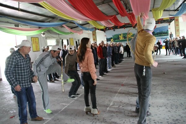 本次活動的最后一個節(jié)目為“力拔山兮氣蓋世”,即拔河比賽。經(jīng)過裁判的簡單講解后,雙方小組摩拳擦掌,氣勢恢宏。實力相差較多的小組比賽令人嗟嘆不已,而旗鼓相當小組的比賽則引爆全場,雙方隊員相持不下,此消彼長,左右挪移。為了讓員工們體驗到巔峰對決,葉總提出,讓全場最壯實的兩名隊員各自分別挑選十名隊員進行皇者之戰(zhàn),實力不分伯仲的強強之戰(zhàn)再次將整個活動推向高潮,隊員們忘記了組別,忘了曾經(jīng)的對手,衷心地為兩支雄壯之師加油吶喊。